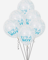 Pack of 6 Boy Clear Latex Balloons with Blue Confetti 12"