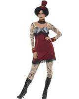 Get ready to steal the show with our Deluxe Tattoo Lady Costume! This vaudeville-inspired ensemble features a daring tattooed lady, adding an edge of sass and spunk to your look. Perfect for any costume party, this outfit will have you feeling like the star of the show!