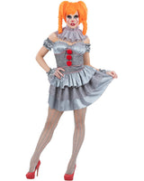 Transform into the iconic and terrifying Pennywise with this IT Chapter 2 costume for women. Perfect for Halloween or any horror-themed event, this dress will bring the infamous clown to life. Details from the movie ensure an accurate representation, making this a must-have for any fan.