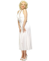 Be the star of the show with our iconic Marilyn Monroe Costume. This halterneck white dress will instantly transform you into the famous actress. Get ready to strike a pose and have the time of your life! One size uk 12-14.