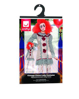 Step right up and relive your childhood nightmares with our Vintage Clown Lady Costume! This vintage-inspired costume is sure to give anyone a good scare, with its grey coloring and scary clown design. Perfect for Halloween or any costume party, this costume is a must-have for all horror fans.