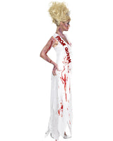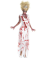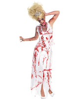 Rule the night as the undead with our Zombie Prom Queen dress. This eerie white number is splattered with blood, perfect for terrifying the living (and maybe even scoring prom queen). Perfect for Halloween or any night of un-dead fun!