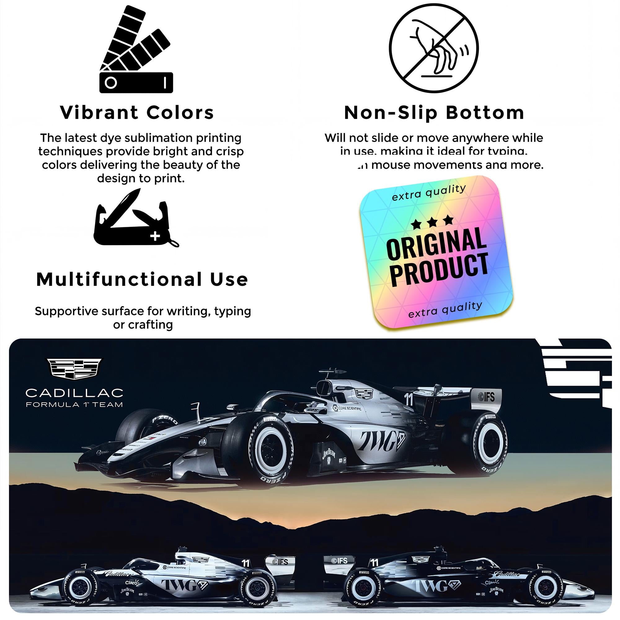 Cadillac F1 Desk Pad 90cm x 40cm, F1 Race Car Decor