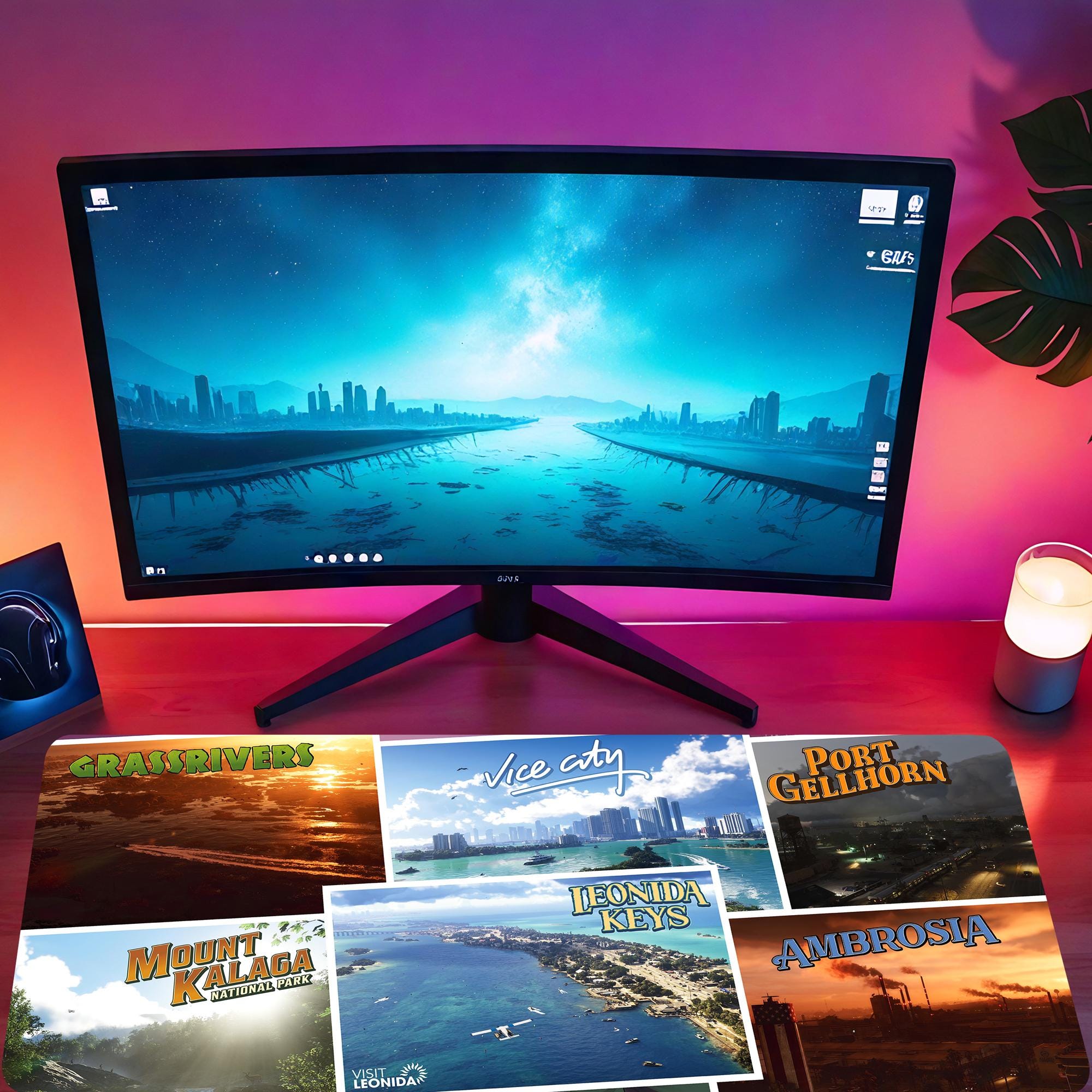 GTA Postcards Deskpads 90cm x 40cm | Gaming Office Decor