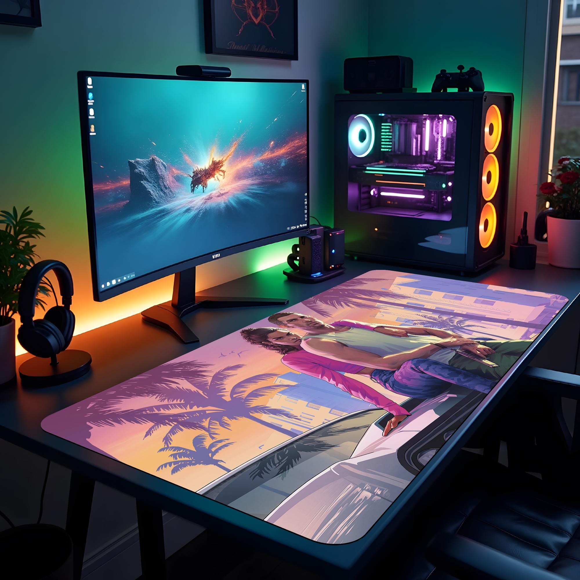 Leonida Crime Deskpad | Tropical Sunset Gaming Mouse Pad (90cm x 40cm)