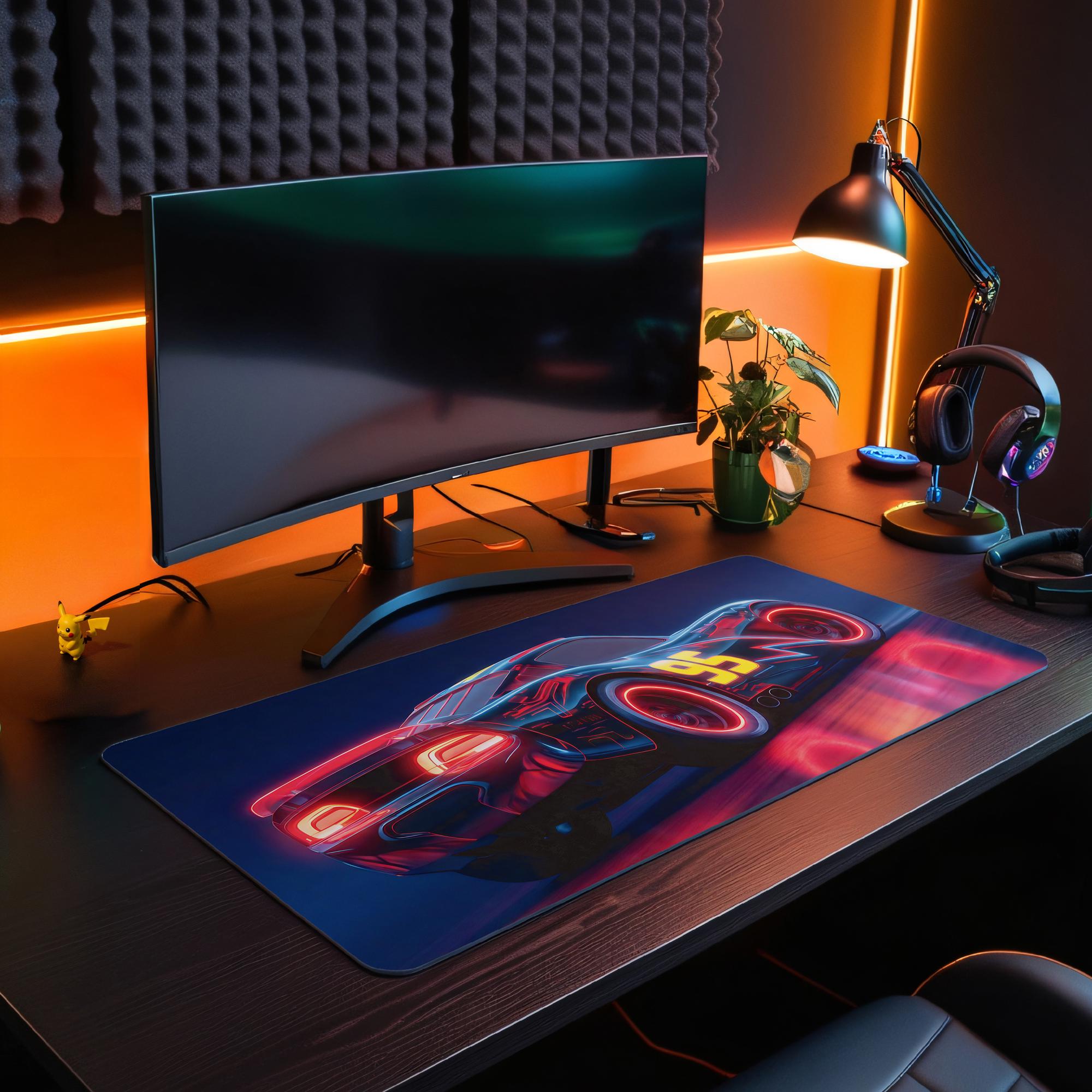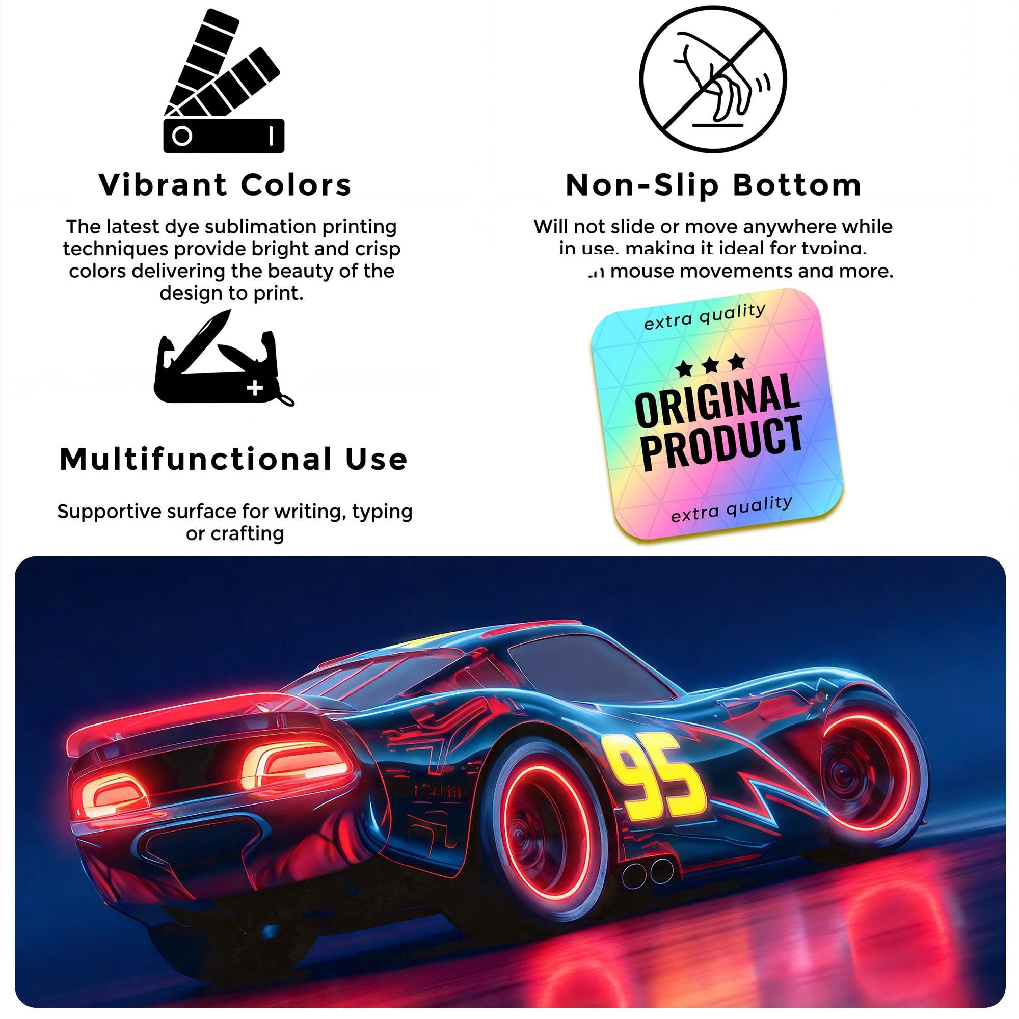 Transform your workspace with this vibrant neon-inspired deskpad featuring the iconic McNeon McQueen design. Measuring 90cm x 40cm, it provides ample coverage for your desk setup while adding a bold pop of colour and personality. The smooth surface protects your furniture from scratches and spills, making it both functional and stylish. Perfect for fans of contemporary design and those looking to elevate their workspace aesthetic with eye-catching flair.