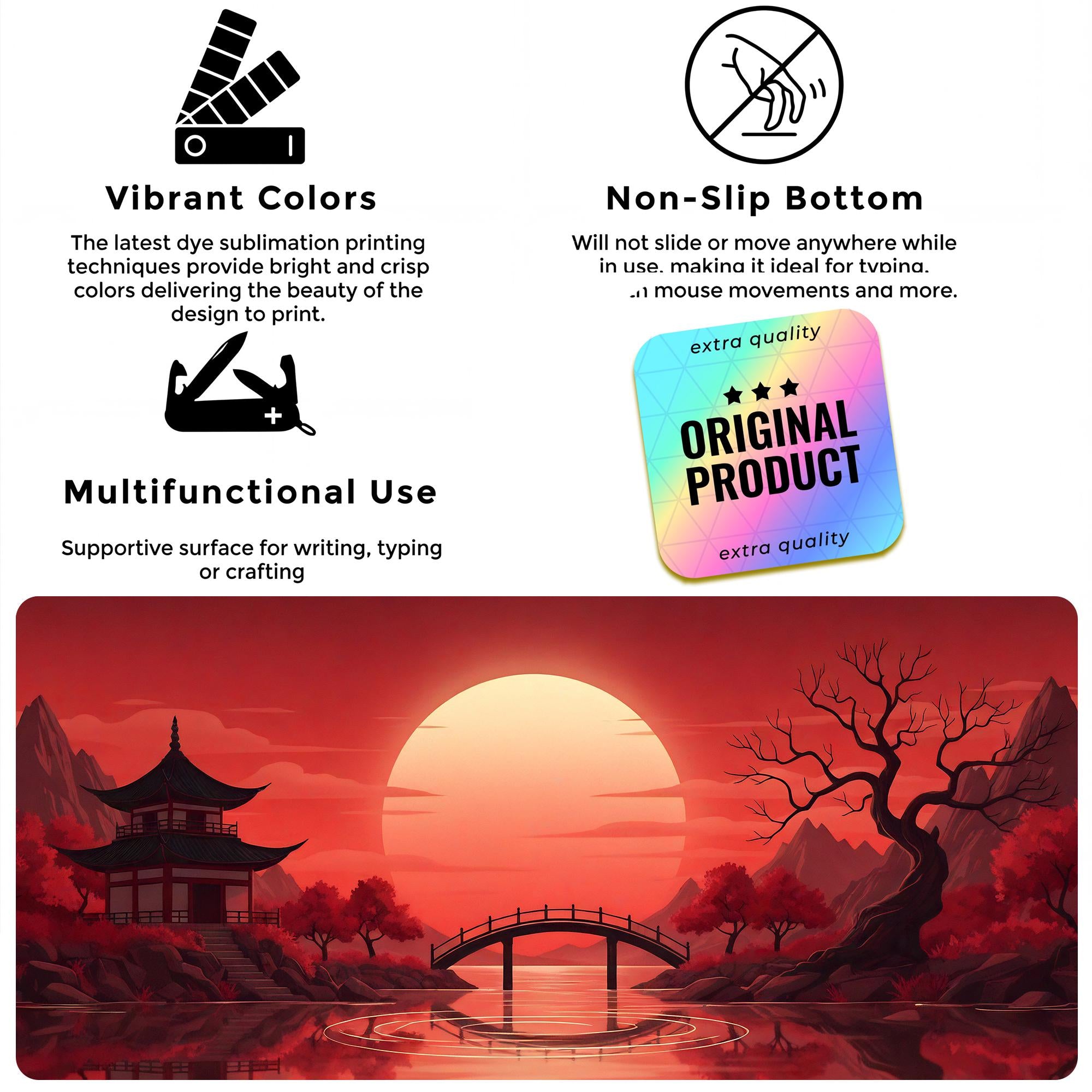 Add a dash of cultural elegance and practical style to your desk with this Japanese Sunset Office Mat. Ideal for desk lovers who appreciate art, functionality, and a peaceful aesthetic. Elevate your workspace today!