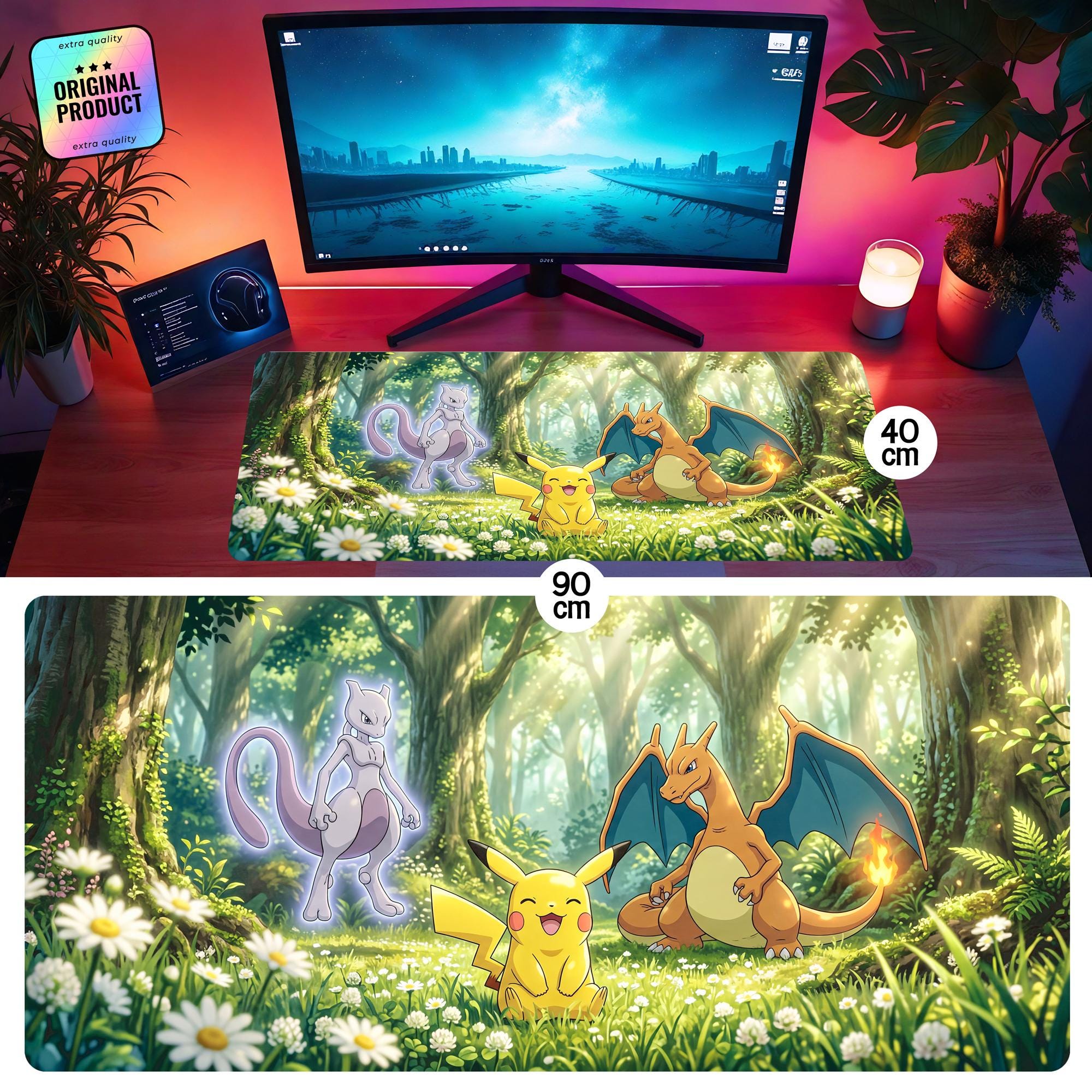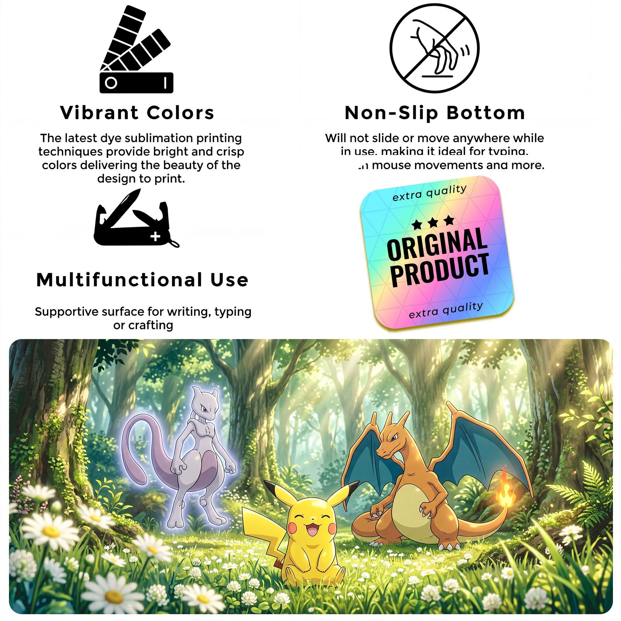 Add a touch of whimsy and fun to your workspace with the Pikachu and Friends Deskpad, measuring 90cm x 40cm. Perfect for fans of Pokémon and adorable character designs, this vibrant desk accessory transforms your desk into a magical, colorful scene featuring Pikachu and friends in a lush, enchanted forest.