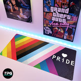 Unleash your gaming prowess on this bold Pride Gaming Deskpad. Featuring vibrant rainbow colors that make a statement while you dominate the competition. The smooth, precision-engineered surface delivers lightning-fast mouse response, while the non-slip base keeps you anchored during intense gameplay. Game with pride, win with attitude.