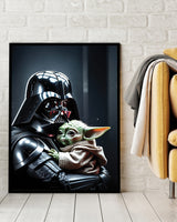 Add a touch of humor to your decor with Darth and Baby Yoda metal print! This quirky piece features the iconic duo in a playful and unique way. Perfect for any Star Wars fan looking to spice up their space. (May the Force be with you!)