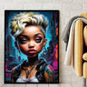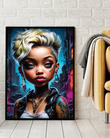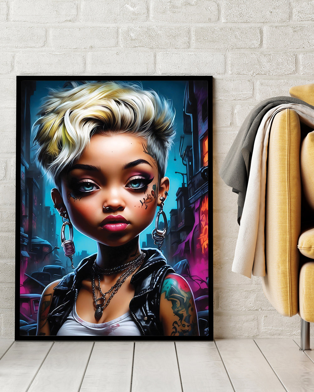 Discover the striking digital image of a cyberpunk female with piercing blue eyes, blending futuristic edge with bold style. This artwork captures a daring spirit, perfect for those who embrace the unconventional and crave a touch of neon-lit rebellion in their collection.