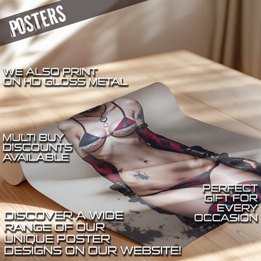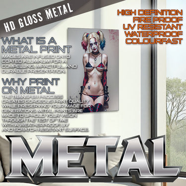 Unleash your inner wild side with Red Blue Angel Provocative. This bold sheet metal print features a provocative image of the infamous antihero, adding a sassy and rebellious touch to any space. Perfect for fans of the iconic character, this print will surely make a statement in any room.
