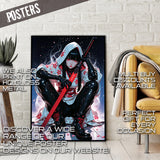 This poster is perfect for adding a dramatic and unique focal point to your gaming room, bedroom, office, or any space that celebrates modern art, sci-fi, and a strong, enigmatic presence.