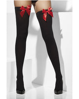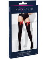 Elevate your style with these black opaque hold ups adorned with charming red bows. Not only do they offer a sexy design, but they also provide a comfortable fit for all-day wear. Embrace versatility and confidence with these stunning hold ups!