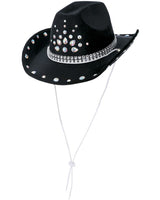 Step into the spotlight with our Black Rhinestone Cowboy Hat! Adorned with sparkling rhinestones, this hat exudes western charm and premium quality. Perfect for adding a touch of glamour to your fancy dress outfits. Embrace your inner cowboy or cowgirl in style!