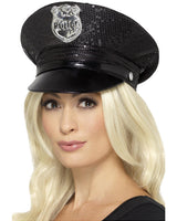 Add a touch of glamour and uniqueness to your outfit with this Black Sequin Police Hat! The sparkling design will make you stand out in style, making it a perfect accessory for special occasions or themed parties. Elevate your look with this eye-catching hat today!