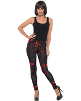 Break out into a screaming frenzy with these Horror Leggings in a bold black hue laced with juicy red blood splatter. Just one size for all daring wearers!