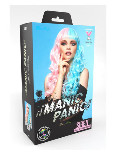 Get ready to rock your look with the Manic Panic Siren Cotton Candy Angel Wig. This wig features playful pink and blue curls, with fringe that adds a touch of fun. You can even heat style it to create your own unique hairstyle. So go ahead, let your wild side out with this one-of-a-kind wig!