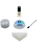 Be bold and bright with the Peacock Aqua Make-Up Kit - perfect for a splash of sparkle in stunning shades of teal, blue, and navy blue. The included sponge and brush make for effortless application, so get ready to slay with a touch of glitter!