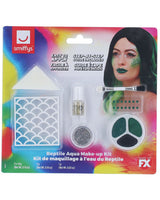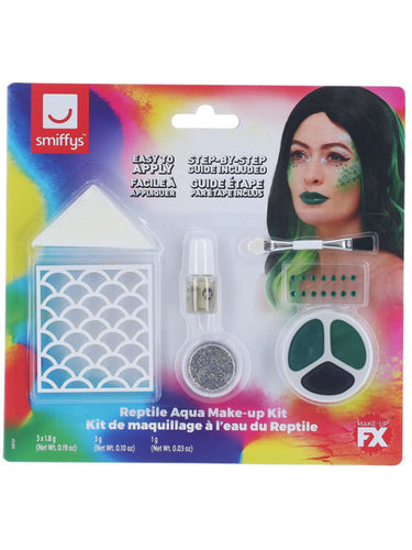This Reptile Aqua Make-Up Kit includes black, dark green, and light green shades for a fierce and funky look. With a stencil that mimics scales, glitter for an extra sparkle, and a brush applicator for easy application, this kit has everything you need to unleash your wild side.
