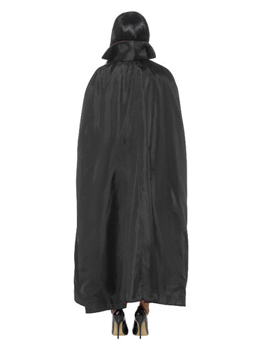 Unleash your inner vampire with this reversible cape. Transform into a creature of the night and "vamp it up" with the red and black design. Perfect for Halloween or adding a touch of playfulness to your wardrobe. (No garlic included!)