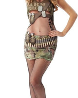 Get ready for a mission in the Sexy Army Annie Costume! This playful dress features a camouflage design and will have you looking fierce and flirty. Perfect for any party or get-together, this costume is sure to turn heads and have you ready for action.