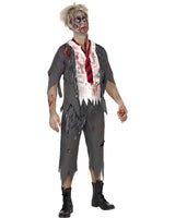 Transform into the ultimate undead student with our Zombie Schoolboy Costume! Complete with bloody splatter details, this costume is perfect for any Halloween party or zombie crawl. It's the perfect blend of creepy and playful - get ready to scare and delight!