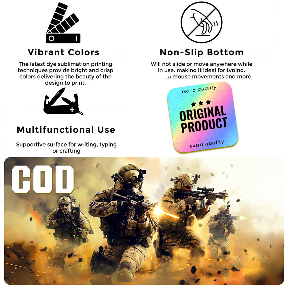 Add some "Duty" to your desk with this one-of-a-kind deskpad! Featuring a Call of Duty design, this deskpad will protect your desk in style. Perfect for any Call of Duty fan, this deskpad adds a fun and unique touch to your workspace. Game on!
