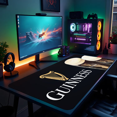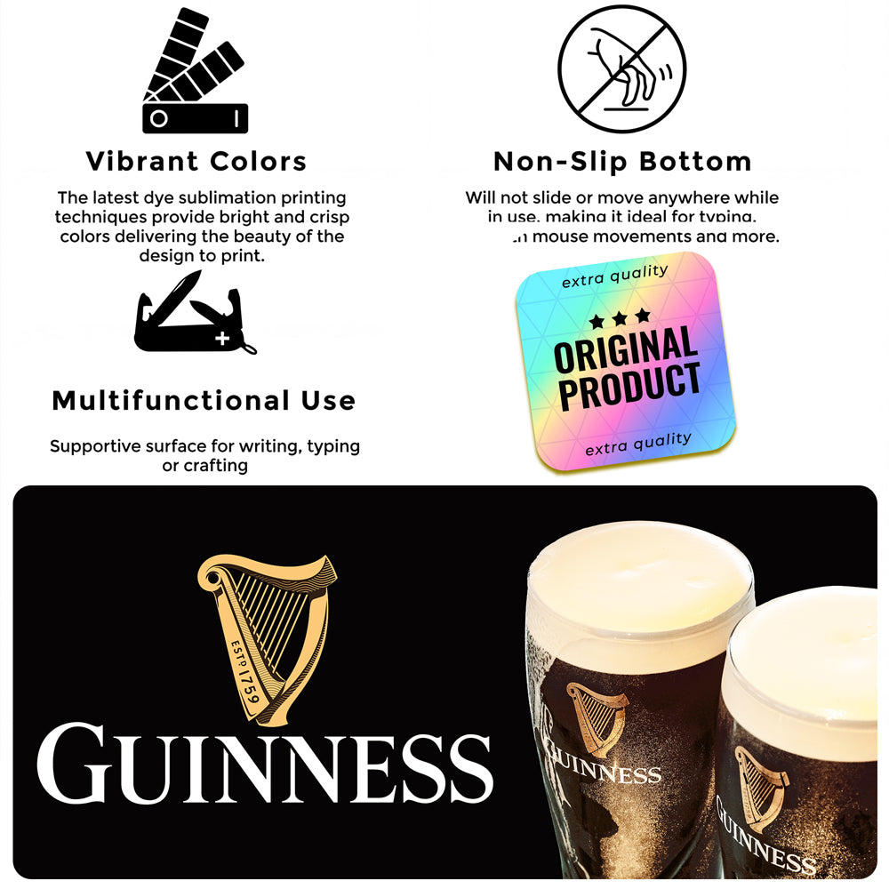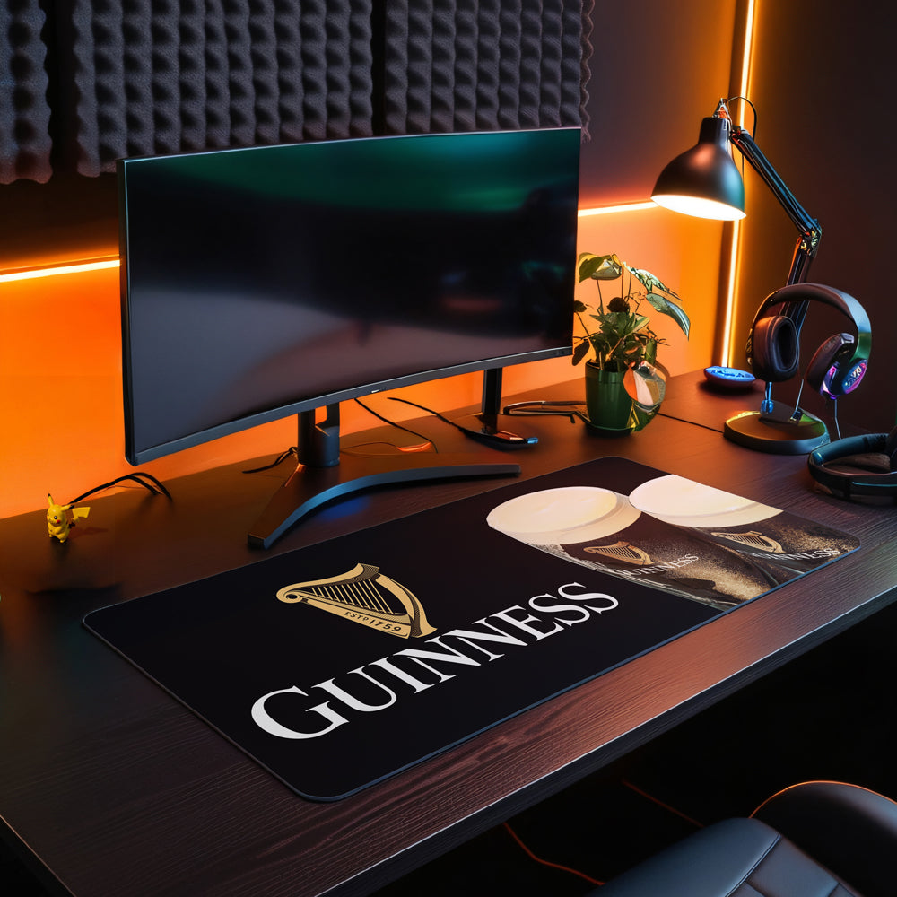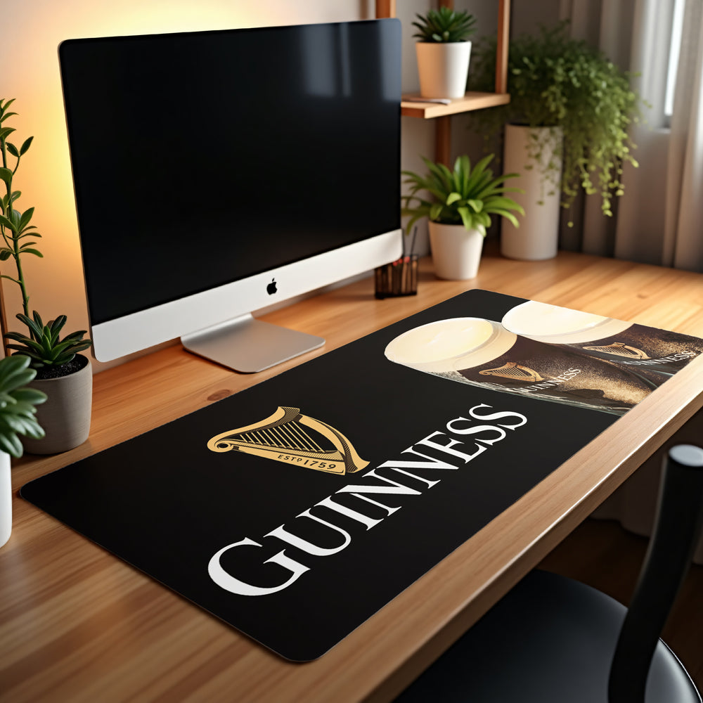 Transform your desk into a Guinness-lover's paradise with this generously sized desk pad mouse mat. Measuring 90x40cm, it provides ample space for your mouse, keyboard, and workspace essentials while showcasing iconic Guinness branding. The smooth surface ensures effortless mouse gliding, and the non-slip base keeps everything anchored in place. Perfect for fans of the legendary stout who want to add a touch of Irish charm to their setup. Whether you're working, gaming, or just need a reliable desk companion, this mat combines functionality with unmistakable style.